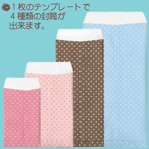 紙にテンプレートをあてて鉛筆でなぞり、切って貼るだけ! 1枚で定形サイズの封筒3種類と、ポチ袋サイズのミニ封筒が作れます。