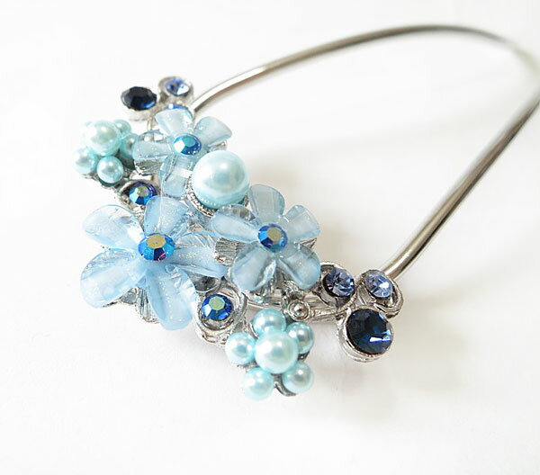 【メール便140円】かんざし/きらきら花パール&ラインストーンU字かんざし簪s29☆クリアゴールドスキン水色 髪飾り フォーマル 和装 パーティ 着物浴衣 七五三 お呼ばれ 夜会巻きコーム 入学式 卒業式 結婚式 発表会 【あす楽対応】